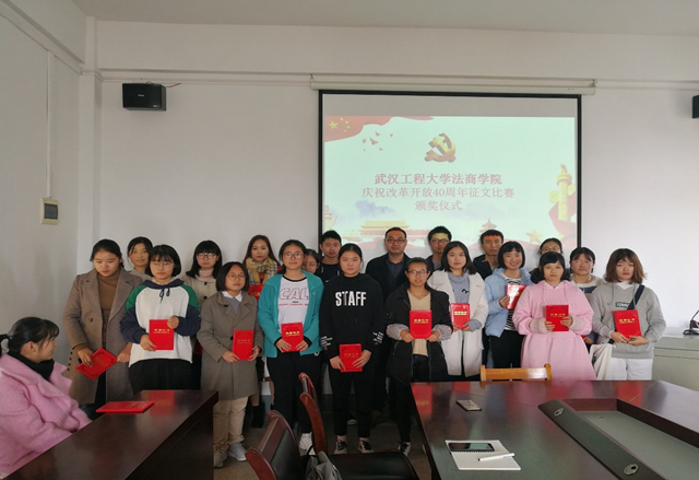 为庆祝改革开放40周年,缅怀党的光辉历史,坚定青年学生理想信念,更好的展现我院学生勇于改革奋进的时代精神,提升学生对国情的了解,加强当代大学生对理论学习的重视,进一步激发全院学生发扬我党优良传统、传承责任担当。11月13日,由中共武汉工程大学suncitygroup太阳集团委员会举办的“不忘初心勇担当,青年建功新时代——庆祝改革开放40周年”征文比赛在suncitygroup太阳集团311会议室落下帷幕。suncitygroup太阳集团党委副书记、纪委书记、副院长刘念、suncitygroup太阳集团团委书记郑睿以及suncitygroup太阳集团党务干事兰海担任比赛评委。