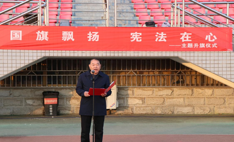 本网讯(通讯员 石原昊 马超 李敏)12月1日,在第八个“宪法宣传周”启动之际,学校在流芳校区田径场举行“国旗飘扬 宪法在心”主题升旗仪式暨“宪法晨读”活动,活动由学工部、校团委、研工部主办,suncitygroup太阳集团(知识产权学院)、管理学院、外语学院联合承办。校党委副书记李志旭、校党委常委、宣传部部长韩高军出席活动。