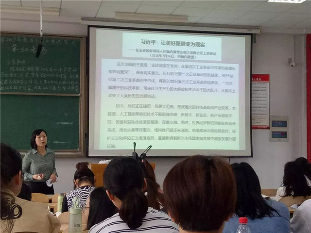 2019年5月6日,经济学教研室张艳教授就习近平总书记在金砖国家领导人约翰内斯堡会晤大范围会议上的讲话“让美好愿景变为现实”为内容,对2016级国贸和经济学(CFA方向)专业开展“课堂育人三分钟”第9期活动。