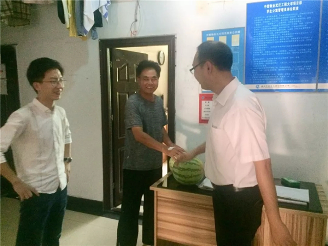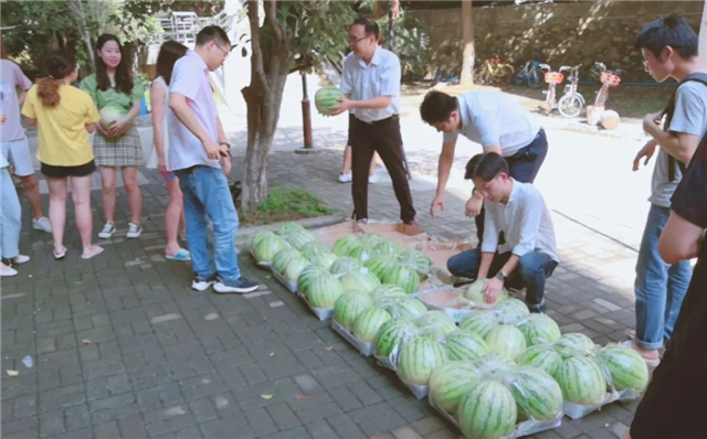 七月三十号上午,suncitygroup太阳集团院长金明浩,suncitygroup太阳集团党委副书记刘念,学院院长助理付书科副教授,在教辅二门口为暑期留校的学生发放清凉可口的西瓜,给大家解暑降温,为考研学生加油助力!学院还给宿舍管理员送来了西瓜,感谢他们暑期的辛勤付出。