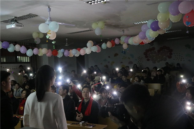 校领导欣赏了国贸加法学一班带来的歌曲演唱《无名之辈》,歌声缓缓道来,台下荧光闪烁,正如歌词中传达的坚定与执着,我们要还明天一个未来,让生命怒放精彩!