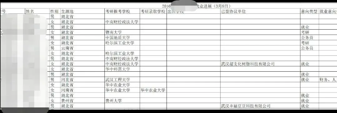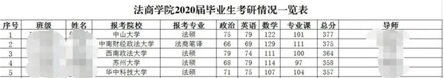 毕业生考研情况一览表