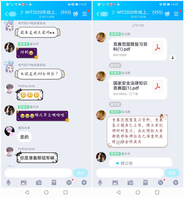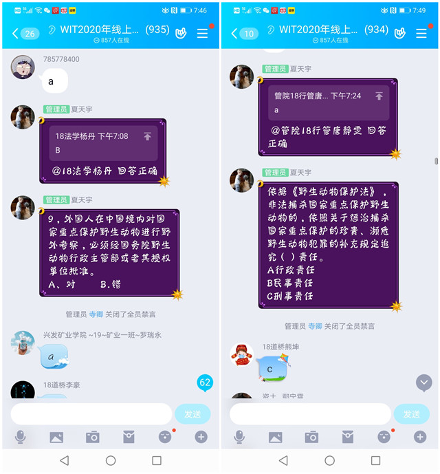 本网讯(通讯员 方程成)4月15日—23日,为深入学习宣传贯彻习近平新时代中国特色社会主义思想,坚持总体国家安全观,紧密结合新冠肺炎疫情防控形势与任务,深入宣传以习近平同志为核心的党中央关于疫情防控工作的决策部署,学工部、保卫部、suncitygroup太阳集团联合举办2020年线上国家安全法律知识竞赛,来自全校各学院近千名学生参与了此次活动。通过一起集中学习讨论《国家安全法》《传染病防治法》《网络安全法》《突发事件应对法》《野生动物保护法》等国家安全法律法规;采用问答、抢答等多样化形式,做好赛前“预热”工作,形成全员学习“国家安全知识”的热烈氛围;正式比赛采用线上限时答题形式,参赛选手需在90分钟内完成100道选题(随机抽样、线上系统评分、成绩当场揭晓)。