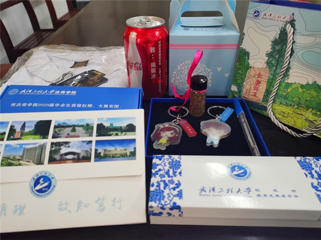 据了解,武汉工程大学各学院和相关部门还赠送了毕业生“健康大礼包”“党员大礼包”“锦绣之笔”“校园明信片”“苹果和可乐”“小微小特”等,祝愿毕业生书写美好前程,永远健康、快乐、平安。