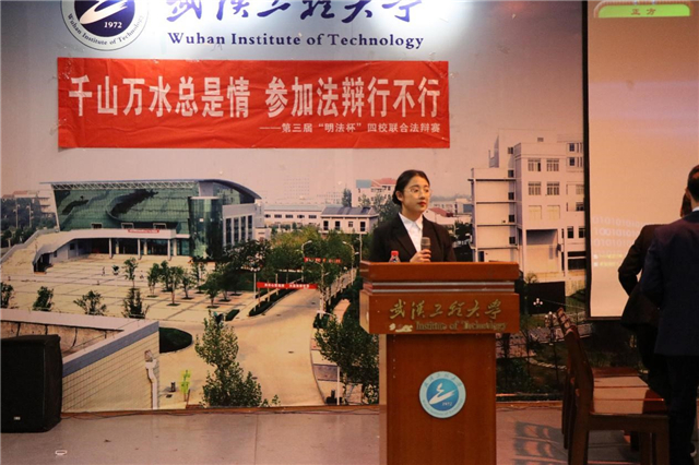 “明法杯”辩论赛是由武汉工程大学suncitygroup太阳集团联合江汉大学法学院、东湖学院法学院及湖北大学知行学院共同主办的四校联合赛事。旨在深入学习宣传习近平法治思想,大力弘扬宪法精神。在坚持理论性、学术性基本原则下,结合宪法理论界热点问题,通过具体实例展现宪法学和社会发展的具体关联,提高同学们对宪法学的研习兴趣,丰富同学们对宪法的认识,鼓励同学们秉持“求是”精神,以学习交流促提升,共学共思共成长。