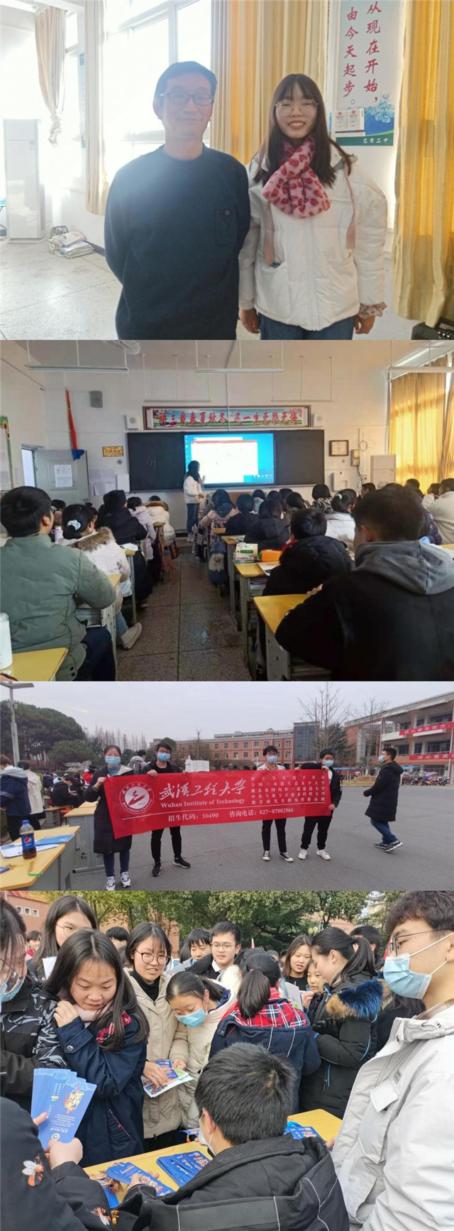 2021年1月,学院共遴选了30名品学兼优的招生宣传员回母校开展“饮水思源母校情,薪火相传感恩心”活动,19级法学1班宋正艳同学就是其中一员。2021年1月15日,志愿者宋正艳回到母校巴东县第三高级中学,通过线上线下形式开展招生宣讲。从学校概况、校园环境、招生计划政策、未来发展等四个方面介绍工大。向同学们展示自己创新制作的“吃喝玩乐行”招生宣传PPT及“逐梦工大”MV,赢得学弟学妹们阵阵掌声,现场咨询气氛热烈。