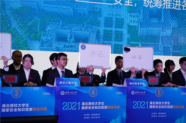 武汉工程大学党委副书记李志旭在致辞中表示,国家安全是国家生存发展的前提、人民幸福安康的基础、中国特色社会主义事业的重要保障。举办大学生国家安全知识竞赛,是贯彻落实习近平总书记总体国家安全观的重要举措,也是提升大学生国家安全意识和能力的重要抓手。省教育厅组织举办全省高校大学生安全知识竞赛活动,将为提升全省大学生安全意识和能力起到积极的引领作用。武汉工程大学将全力做好赛事工作安排和服务,同时加强赛事宣传、强化学生安全知识教育,进一步扩大学生参与覆盖面,推动大学生安全教育持续向纵深发展,在全校范围内营造人人“学安全、识安全、守安全”的良好氛围,自觉承担起维护国家安全的重大责任和义务,为湖北平安校园、法治校园建设,为建设更高水平的平安湖北、更高水平的平安中国做出应有贡献。