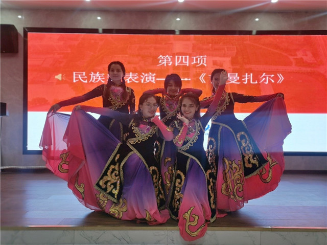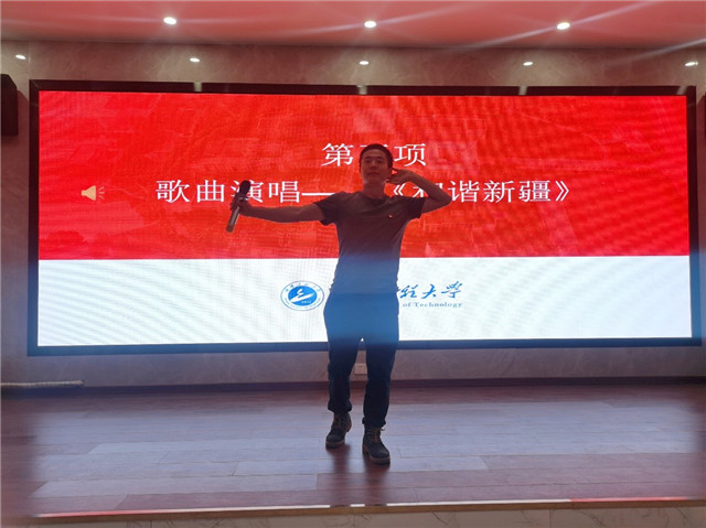 少数民族的同学们深情朗诵《可爱的中国》,民族舞《吉曼扎尔》和歌曲《和谐新疆》《爱我中华》将现场气氛推向高潮。
