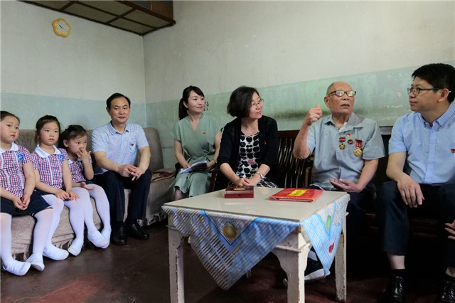 在送书、送学过程中,党员志愿者们还了解了胡礼清老党员的思想动态、对学校发展的建议以及他的生活困难,嘱咐他保重身体,同时和他分享了学习体会。大家纷纷表示将继承老一辈革命家的爱国、爱党、爱民的伟大情怀,为实现“两个一百年”奋斗目标、实现中华民族伟大复兴中国梦不懈努力。