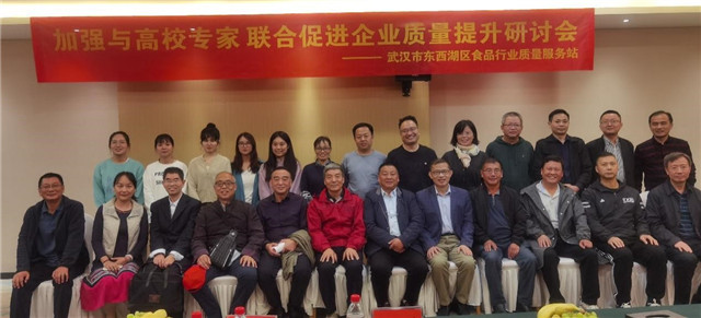 东西湖区食品协会、一站式服务站站长程长根介绍武汉东西湖区食品行业协会的背景、职能和企业服务特色。“校企合作是中小微型企业实现长线发展的最佳选择,”东西湖食品行业协会高级顾问董泽民书记指出,武汉知成社会实践中心搭建的高校技术专家平台将助力企业技术研发和产品创新。