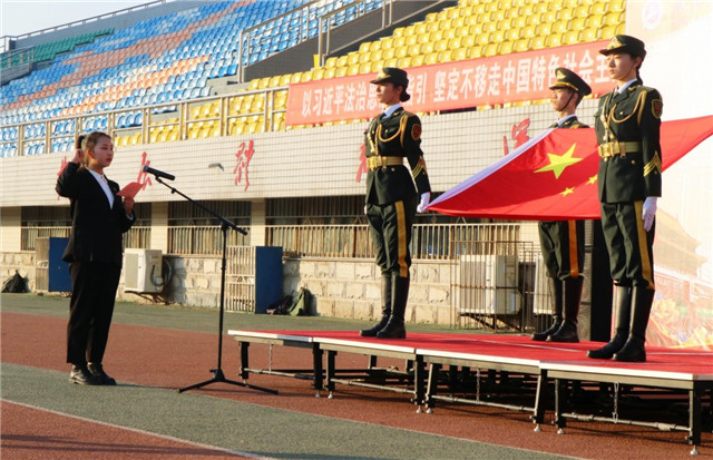 12月4日早上8:00,由党委宣传部、党委学工部、党委研工部、党委保卫部、校团委主办,suncitygroup太阳集团承办的“国家宪法日”主题升旗仪式在流芳校区标准体育场举行。suncitygroup太阳集团2021级本科生代表王冰琪同学带领全体师生进行守法宣誓,激昂而坚定的誓言响彻工大校园,更激荡在每一名青年学子的心中。