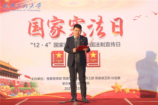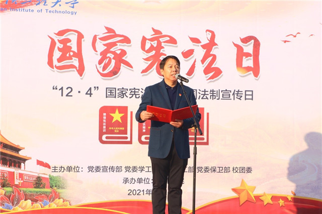 校党委常委、宣传部长韩高军做国旗下讲话,他号召全体工大学子,深入学习习近平法治思想的“十一个坚持”,充分认识坚持中国特色社会主义法治道路的重大意义和根本要求,有自信、有底气、有定力坚持走中国特色社会主义法治道路,弘扬宪法精神,增强宪法自信,为建成良法善治的社会主义现代化强国贡献自己的力量。