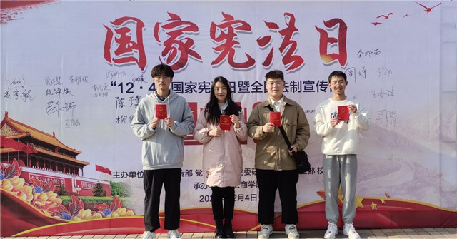 本网讯(通讯员 王祥礼)为进一步学习习近平法治思想,深入贯彻落实党的十九大和十九届五中、六中全会精神,培养学生崇尚宪法、尊重宪法、服从宪法、遵守宪法的意识,推动学校科学治校、民主治校、依法治校、以德治校进程,学校以第八个“国家宪法日”和第四个“宪法宣传周”为契机,举办宪法宣传“七个一”系列活动。