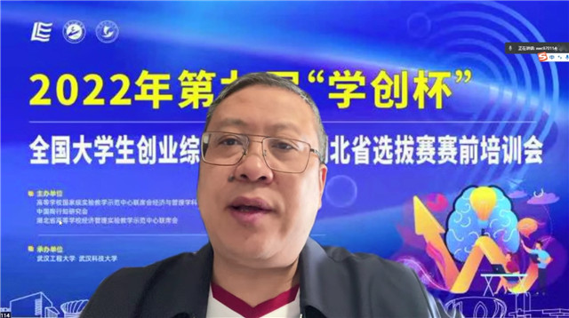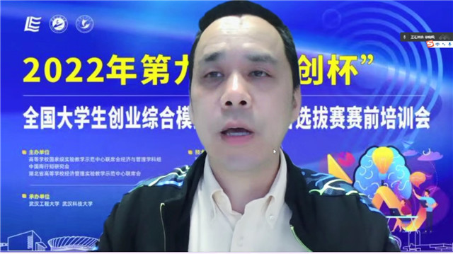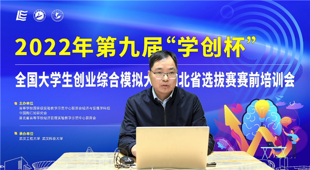 (通讯员 田嘉莉)为进一步做好第九届“学创杯”全国大学生创业模拟大赛(以下简称“学创杯”)湖北省选拔赛参赛工作,帮助指导老师和同学们了解大赛的政策、流程,5月1日,学校成功承办2022年第九届“学创杯”全国大学生创业模拟大赛湖北省选拔赛赛前培训会,会议采取线上直播方式进行。“学创杯”省赛主办单位湖北省高校经济管理实验教学示范中心联席会组长、湖北经济学院实验教学中心常务副主任陈新武教授,武汉大学经济与管理国家级实验教学示范中心副主任、“学创杯”湖北省赛组委会秘书长徐晓辉教授,支持单位贝腾教育发展集团湖北区总经理郑东琴,承办单位武汉工程大学suncitygroup太阳集团副院长付书科教授,武汉工程大学suncitygroup太阳集团经济学教研室副主任田嘉莉博士出席此次会议。