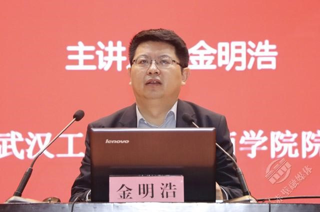 金明浩教授以《实施知识产权战略 赋能地方产业高质量发展》为题,从知识产权概述、我国知识产权战略实施的新形势、知识产权赋能地方产业高质量发展的建议等三方面,展开专题报告,同时结合赤壁的资源优势融入地方经济建设进行了详细分析。金明浩教授以知识产权强国战略为支点,结合知识产权“创造、运用、保护、管理、服务”的新理念与新思维,提出了赤壁市结合自身资源优势以知识产权赋能高质量发展的新方法与新举措。专题辅导报告授课内容获得了与会人员的一致好评与热烈反响。赤壁市委书记董方平对专题报告学习做了总结发言,并对金明浩教授的专题辅导报告给予了充分肯定。
