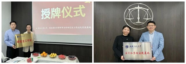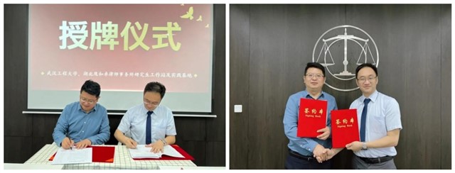 双方签约框架合作协议、举行授牌仪式,并就人才培养开展研讨交流。双方就实践型人才培养展开充分讨论,希望工作站成为企业技术创新,高校科研成果孵化、转化的重要载体,共同培养复合型人才,为区域人才培养提供有力支撑。签约及授牌仪式结束后,武汉工程大学一行参观湖北鹰和卓律师事务所并合影留念。