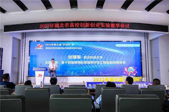 在2022年湖北省高校创新创业实验教学研讨环节,武汉大学徐晓辉教授、武汉理工大学杨爱民主任、中南财经政法大学胡川教授、武汉科技大学张瑞军教授、武汉工程大学创新创业实践中心负责人张哲老师分别做主题报告,与会专家代表就推动湖北省高校创新创业实验教学进行了深入探讨交流,现场气氛热烈。