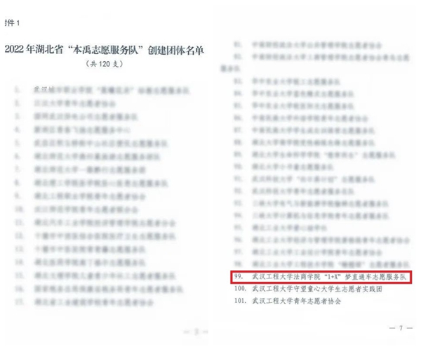 (通讯员 章文杰)近日,共青团湖北省委印发《关于确定2022年湖北省“本禹志愿服务队”创建团体的通知》,我院“1+X”梦想直通车志愿服务队成功入选!