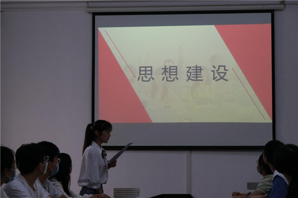 班长崔芃凡同学从班组建设、班风建设、思想建设、学习成果、发展期许五个方面汇报全班在过去两年取得的成绩和成果。