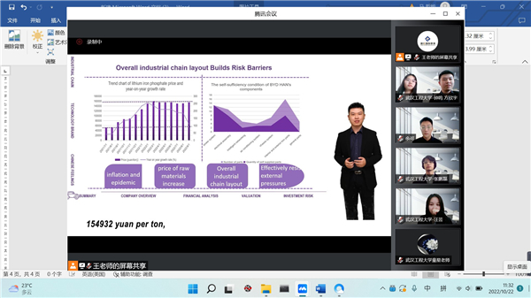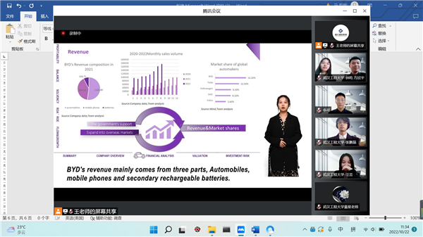 决赛前,各团队提前提交英文研报、英文PPT和PPT演绎视频,组委会聘任评委对研报和PPT给予评分;决赛中,每个团队英文讲解PPT,三位评委提问,同学们回答问题,评委评分,组委会计算出答辩成绩;最终以三项评分,评出每个团队的最终成绩。此赛事充分考量了学生们运用证券投资、财务分析、风险控制等专业知识对上市公司做出投资决策的能力,体现出团队成员通力协作的能力。我校五位同学在决赛中的表现,充分展现出扎实的专业知识功底和团队的协作默契。