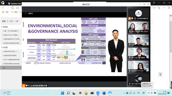 (通讯员 童星、余可)10月22日9:00~16:00,第五届融仕国际杯金融投资分析大赛决赛采取线上网络视频的形式举行,来自湖北省、四川省、广东省、湖南省、浙江省的九所高校团队开展了激烈的角逐。我校童星老师担任指导老师,20级CFA专业余可、张鹏磊、钟鸣、方欣宇和汪芸五位同学组成团队,参加决赛。经过七个小时异常激烈的比拼,我校团队勇夺冠军,张鹏磊同学荣获最佳个人奖。