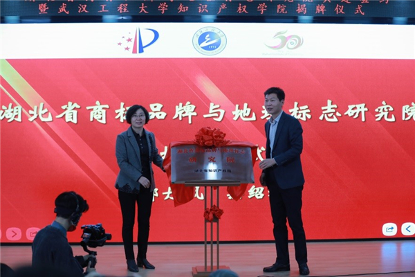 随后,武汉工程大学王存文校长、湖北省知识产权局李述武副局长共同为武汉工程大学知识产权学院揭牌,武汉工程大学郑丹凤副书记、湖北省知识产权局梁绍斌副局长共同为湖北省商标品牌与地理标志研究院揭牌。