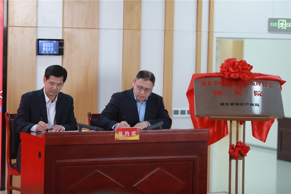 在揭牌仪式后,武汉工程大学分别与湖北省知识产权局、国家知识产权局专利局专利审查协作湖北中心、武汉市市场监督管理局(知识产权局)、武汉东湖新技术开发区管委会签署战略合作协议。