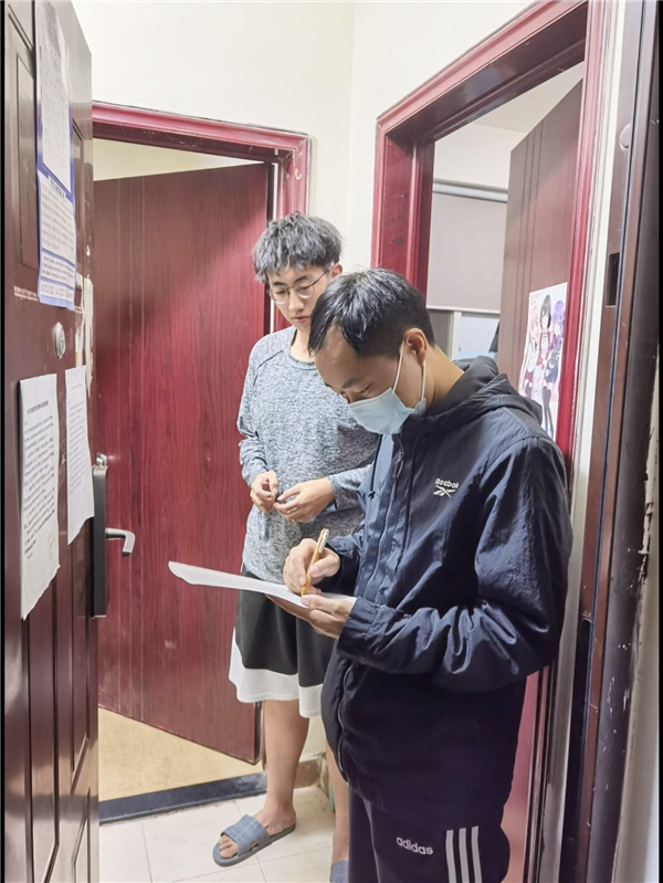 在宿舍内,各位导师们详细的查看了同学们的居住环境和生活实况,提醒学生安全用水用电,消除寝室安全隐患,加强安全教育。关心学生学习、生活,在常态化疫情防控条件下,是否适应,是否有需要帮助的地方,摸清学生需求。宣传解释了学校疫情防控各项政策,引导研究生理解和支持,提醒同学们在人员聚集的场所一定按照要求佩戴口罩,自觉遵守防疫相关规定。