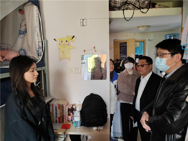 (通讯员 刘敏)为深入了解返校学生的学习、生活需求,确保新学期良好的学习生活秩序。2月19日下午,suncitygroup太阳集团党委书记杨克平、党委副书记孙勇、副院长付书科一行在全体辅导员陪同下前往学生宿舍开展走访活动。