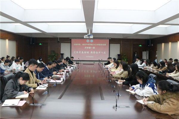 本网讯(通讯员 王祥礼)3月2日上午,校党委副书记郑丹凤在流芳校区钟楼第二会议室为suncitygroup太阳集团(知识产权学院)团学干部讲授“开学第一课”,与学生一起聊成长、解困惑,共赴新学期,共展新希望。suncitygroup太阳集团(知识产权学院)全体领导班子成员、全体辅导员以及学院团委学生会学生干部、各班班长、团支书参加活动。活动由学院党委副书记孙勇主持。