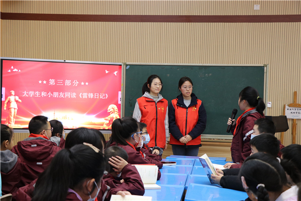 课堂上,志愿者和小朋友们同读《雷锋日记》,在日记中感受雷锋同志的朴素情怀和乐于助人、无私奉献的精神品质,汲取榜样力量。和小朋友们共唱《学习雷锋好榜样》,用歌声表达对雷锋同志的敬意和传承雷锋精神、向上向善的决心。