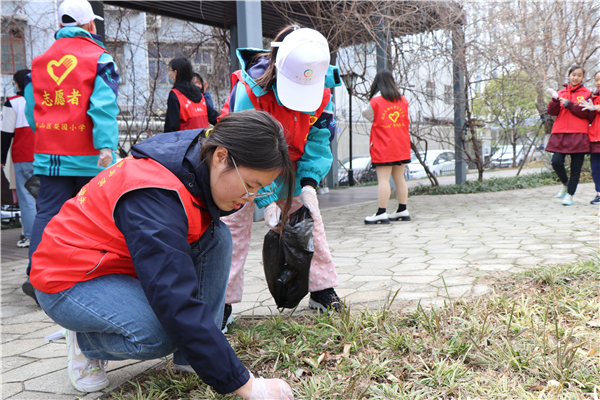 学习结束后,志愿者们与小朋友们“一对一”牵手结对,共同前往街心小花园、东湖社区开展学雷锋实践活动。大家拿起簸箕、扫帚等工具,捡拾路面白色垃圾、铲除卫生死角,用实际行动学习雷锋,传承雷锋精神力量,争当先“锋”。