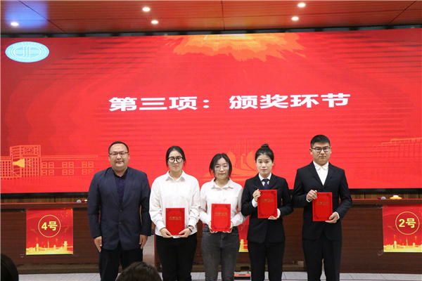 本网讯(通讯员 章文杰)3月15日下午,由武汉工程大学党委学工部主办,suncitygroup太阳集团(知识产权学院)承办的2023年武汉工程大学国家安全知识竞赛决赛顺利举行,经过初赛和复赛层层选拔,共有5支队伍参与决赛,参赛选手在学校图灵报告厅同台竞技。校党委学工部部长吕容涛、校团委挂职副书记翟莹、suncitygroup太阳集团(知识产权学院)党委副书记孙勇、副院长张艳、国家安全知识竞赛指导老师董维参加活动并为获奖队伍颁奖。