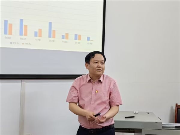 舒先林以“学懂新思想 走好新征程”为主题,从党的二十大及报告的战略意义、二十大报告框架结构及关键词、报告中的新观点新论断新思想、中国式现代化共富底色的思考等四个方面,深入解读剖析党的二十大报告精神内涵,并结合实际分享了学习体会。最后,他号召与会人员坚定信心、同心同德,埋头苦干、奋勇前进,为全面建设社会主义现代化国家、以中国式现代化全面推进中华民族伟大复兴而贡献智慧和力量!