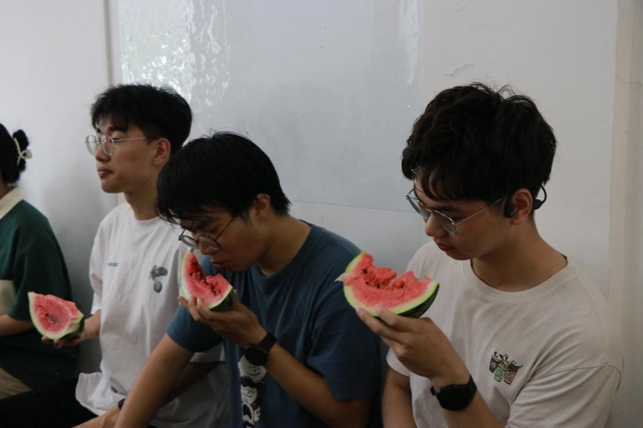 本网讯(通讯员 章文杰、王颖)为深入开展学习贯彻习近平新时代中国特色社会主义思想主题教育,深刻践行“一线工作法”,切实帮助学院暑期留校考研学子坚定考研目标、缓解备考压力、增强必胜信心,6月30日,学院党委书记杨克平、党委副书记孙勇、国贸教研室主任龚梦琪以及全体辅导员为2024届考研学子送上考研“加油瓜”和祝福。