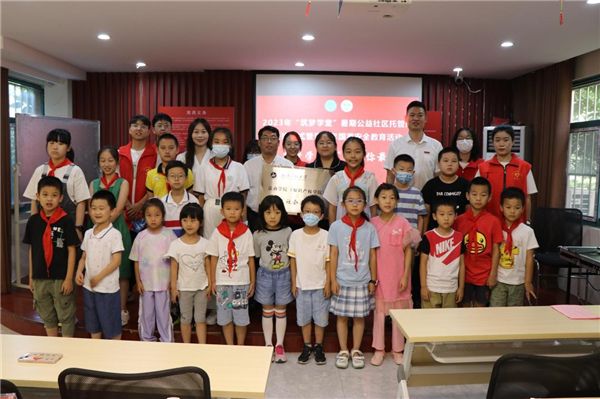 本网讯(通讯员 章文杰 王颖)为推进高校院系与社区共建共联,引导高校大学生积极参与社区治理工作。7月5日,武汉工程大学suncitygroup太阳集团(知识产权学院)联合武汉市洪山区梨园街道东湖社区共同举办2023年“筑梦学堂”暑期公益社区托管班开班仪式暨青少年国家安全教育活动。东湖社区党委书记刘汉昇、suncitygroup太阳集团(知识产权学院)党委副书记孙勇、辅导员王颖以及“1+X”梦想直通车志愿服务队10名志愿者、东湖社区35名小朋友参加活动。活动由学院团委书记章文杰主持。