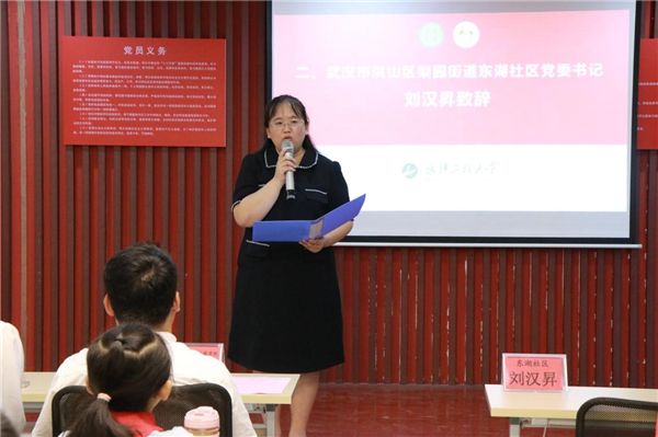 活动在庄严的国歌声中拉开帷幕。随后,刘汉昇在致辞中对武汉工程大学suncitygroup太阳集团(知识产权学院)一行的到来表示热烈欢迎。她表示,一直以来,东湖社区与武汉工程大学suncitygroup太阳集团(知识产权学院)在文化建设、志愿服务、社区治理等方面都保持着良好的合作关系,希望校社双方以此次活动为契机,进一步加强校社联动,为大学生们搭建更多施展才华、奉献社会的实践平台。