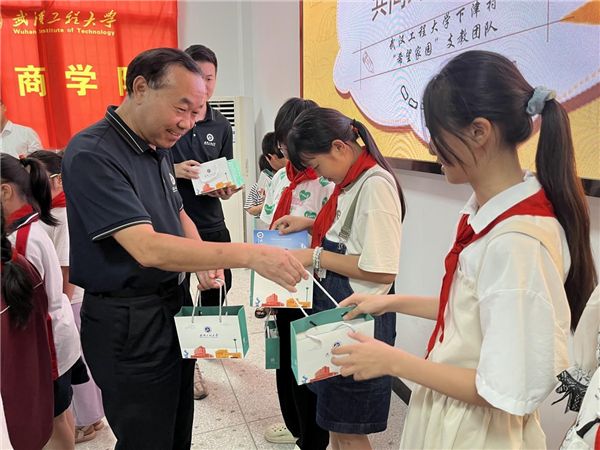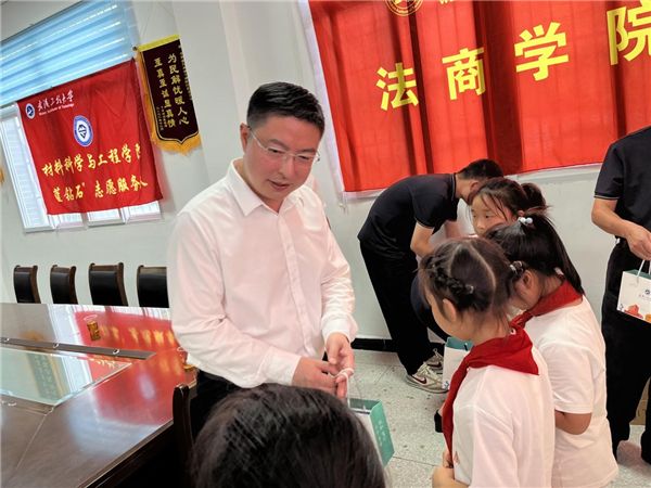 林桢栋走进“希望家园”公益课堂,认真观摩志愿者给小朋友们教授的“玩转材料”手工创意课。他与李志旭一行给小朋友送上学校精心准备的小礼品,一份武工大明信片、一只签字笔、一盒彩笔、一个文具袋、一串卡通钥匙扣,祝愿小朋友们好好学习,天天向上。小朋友们收到礼物开心不已。