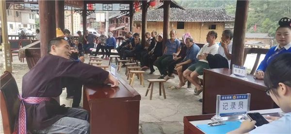 实践团成员李世豪:苗族同胞大都能歌善舞,酒过三巡之后三三两两开始随性高歌,在融洽的气氛下,纷繁琐碎的矛盾在一道道歌声中消弭。苗歌与普法的创新结合,将现代法治与传统文化紧密结合,不仅实际解决了村民的矛盾,也赋予苗族民歌文化新的生命。