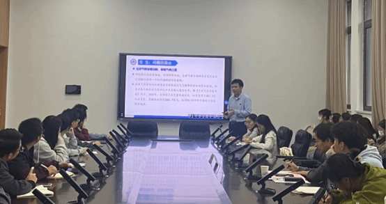 在交流环节,与会师生就“控制变量选取”“模型选用依据”“如何保证绿色创新的质量”“调节效应分析”等进行了现场交流互动,潘教授就同学们的提问进行了详细解答。潘教授生动有趣的讲述开阔了大家的学术视野,激发了同学们的学术热情,同时也解答了大家的很多困惑,同学们纷纷表示收获颇丰、受益匪浅。