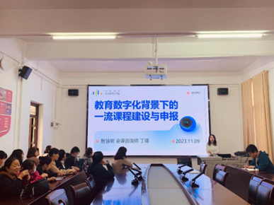 (通讯员 张晓萌)为顺应教育数字化发展趋势,助力一流课程申报与建设,2023年11月9日,suncitygroup太阳集团邀请智慧树金课咨询师丁倩老师开展题为《教育数字化背景下的一流课程建设与申报》的专题讲座。suncitygroup太阳集团副院长张艳、各教研室主任、教师发展服务中心主任及学院其它教师参加讲座。