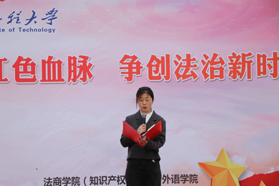 外语学院院长陈明芳作总结讲话,她鼓励学子们青春奋斗正当时,积极投身实现中华民族伟大复兴中国梦,并向全体同学提出三点希冀:一是要爱国,忠于祖国,忠于人民。把自己的理想同祖国的前途、把自己的人生同民族的命运紧密联系在一起,扎根人民,奉献国家;二是要求真,求真学问,练真本领。全面了解社会主义法治理念,深化对社会主义法治理念的认识,通过学习来提高我们的思想认识,增强遵纪守法的自觉性;三是要力行,知行合一,做实干家。用实际行动践行新时代工大学子的使命担当,用青春和汗水铸就辉煌。