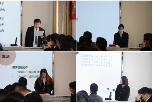 崔芃凡代表第七届学生会主席团成员汇报2022年度学生会工作,郑越亭代表第七届研究生会主席团成员汇2022年度研究生会工作。