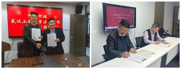 随后,双方签约了合作协议、举行授牌仪式。签约及授牌仪式结束后,武汉工程大学一行参观律师事务所并合影留念。