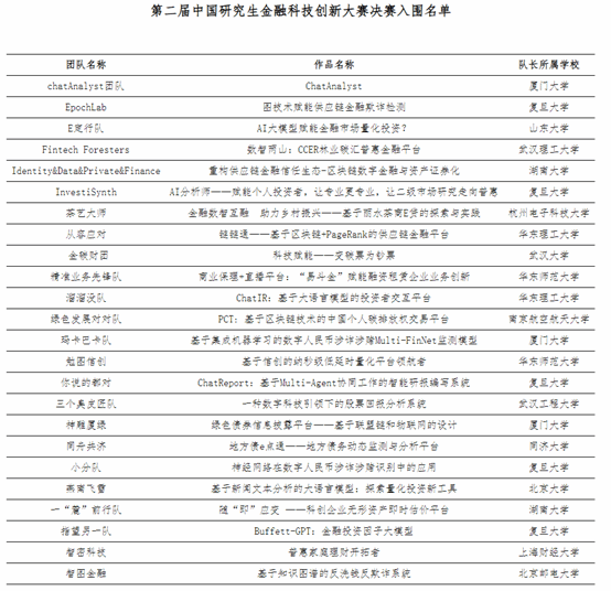 中国研究生金融科技创新大赛是中是“中国研究生创新实践系列大赛”之一。“中国研究生创新实践系列大赛”是由中国学位与研究生教育学会、中国科协青少年科技中心共同主办,是唯一被明文写入教育部、国家发展改革委、财政部发布的《关于加快新时代研究生教育改革发展的意见》(教研〔2020〕9号)具有权威性的国家级赛事,在教育部学位管理与研究生教育司指导下,专门面向在校研究生的全国性赛事,秉承以“国家战略需求为导向,以行业企业参与为支撑”的运作模式,旨在通过竞赛和激励的方式,提高研究生的创新能力和实践能力,助力国家急需、重点领域高层次人才培养。第二届中国研究生金融科技创新大赛由复旦大学承办,不仅关注传统的金融科技领域,也积极引进和培养金融、科技、数据复合型人才,重点关注数据治理、架构设计、模型算法、大数据、人工智能、网络安全等专业领域。