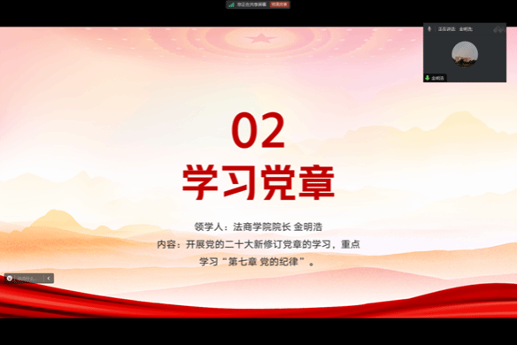 在经济学教工党支部和国际贸易教工党支部开展的联合主题党日活动中,院长金明浩领学了党的二十大新修订的党章,重点讲解了“第七章 党的纪律”。金院长深入浅出地阐述了党的纪律的重要性,强调党员要严格遵守党章,增强纪律意识,做到令行禁止,确保党章精神落地生根。