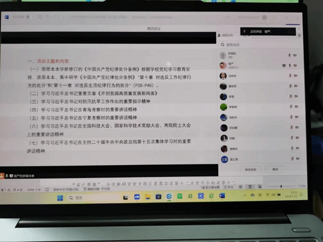 在法学教工党支部和知识产权教工党支部开展的联合主题党日活动中,支部书记罗嘉航、骆严领学了党的二十届三中全会公报的主要内容。支部的党员们围绕学习贯彻党的二十届三中全会精神,学习党章和警示教育的主题展开了热烈的讨论。大家纷纷分享学习心得,交流体会,聚焦学院的学科专业、课程思政、人才培养等工作,提出了许多建设性意见和建议。通过讨论,党员们加深了对党章和纪律处分条例的理解,增强了融入学院高质量发展的共识,确保了学习效果。