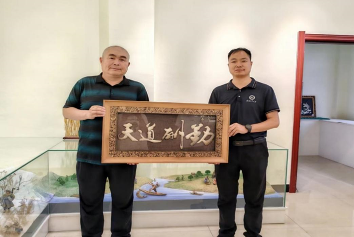 (通讯员 肖文瑾 袁双桂)为深入贯彻落实中央民族工作会议精神,完整准确全面把握和贯彻习近平总书记关于加强和改进民族工作的重要思想,有形有感有效推进铸牢中华民族共同体意识,武汉工程大学suncitygroup太阳集团(知识产权学院)组织暑期社会实践团,重走习近平总书记的考察路线,于7月28日赴同江市八岔赫哲族乡开展调研,八岔赫哲族乡中心校校长毕洪兵赠送国家级非物质文化遗产:赫哲族鱼皮画作品《天道酬勤》。