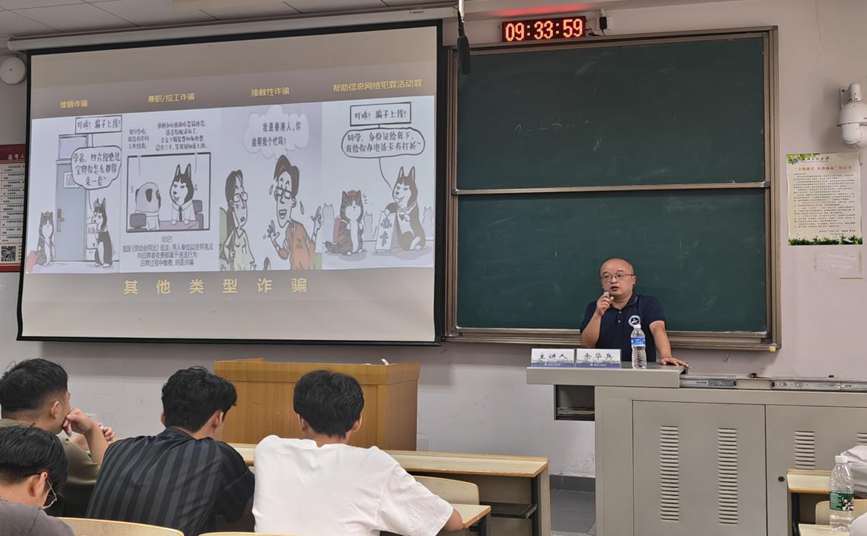 余华兵围绕网络反诈骗、网络安全、人身安全、宿舍安全等普法安全教育等方面展开,通过大量案例生动形象的为同学们讲解了“安全防范第一课”,引导同学们自觉将安全知识入脑、安全意识入心。
