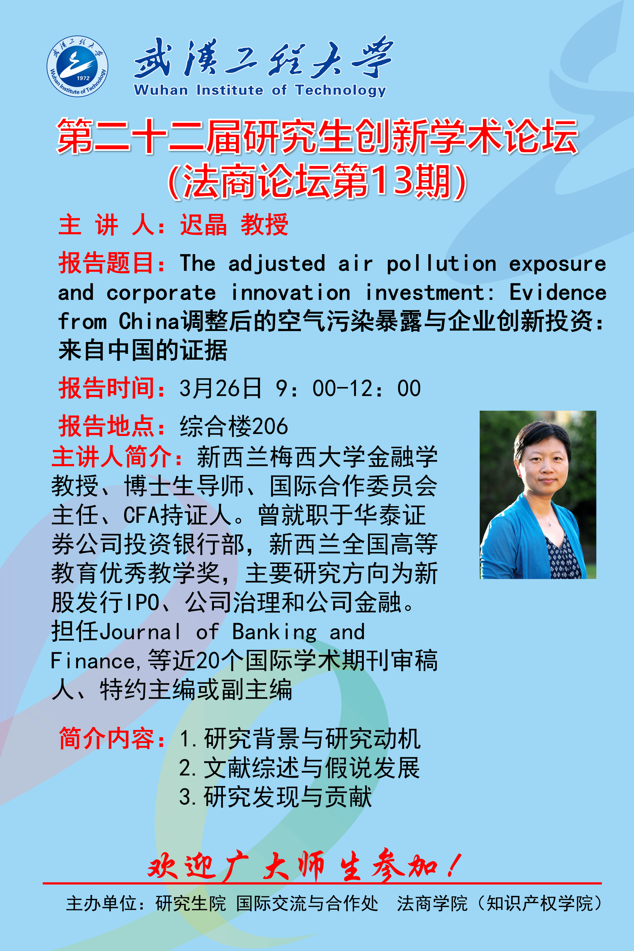 主讲:迟晶 教授时间:2024年3月26日 9:00-12:00地点:综合楼206